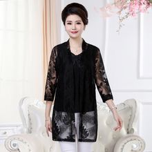 新款女式大码披肩中长款镂空百搭蕾丝衫中年女装外披夏空调衫外套