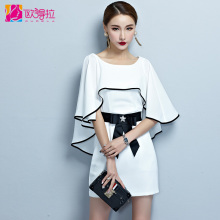 欧得拉2016夏女连衣裙韩版拼接修身不规则雪纺裙短裙潮