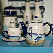 地中海风格咖啡壶 陶瓷水壶水杯套装 创意家居用品装饰品时尚礼品