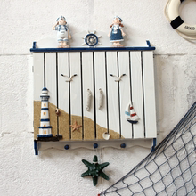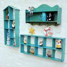 实木做旧蓝色搁板装饰架 创意衣帽挂钩 地中海风格壁挂装饰置物架