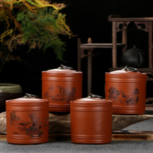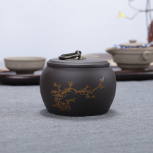 宜兴紫沙半斤装密封茶叶罐便携式大号茶罐梅兰竹菊粗陶储存罐陶瓷