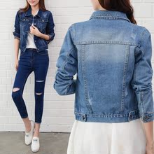 2017春装休闲外套短款牛仔上衣长袖韩版学生装口袋磨破运动外搭