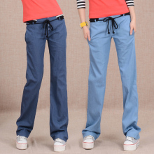 2017春夏薄款牛仔裤学院阔腿休闲女裤宽松运动裤弹力长裤子肥腿