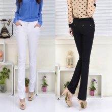 2017春秋新白色弹力微喇叭牛仔裤修身显瘦女长裤子女休闲气质