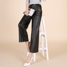欧美春秋休闲皮裤宽松黑色显瘦阔腿裤高腰肥腿PU皮女长裤大码女装