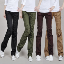 2017春款新工装户外休闲加长直筒舞蹈裤口袋军迷裤全棉运动女长裤