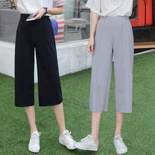 韩版春夏女士雪纺阔腿裤大码七分休闲裤薄款宽松直筒九分女裤