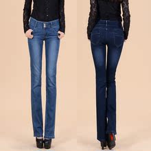2017春秋季新款微喇叭女长裤弹力修身显瘦提臀牛仔裤子肥腿大码