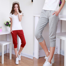 2017春夏款韩版运动休闲七分裤宽松女裤子中腰中裤薄棉大码女装