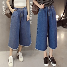2017春季新款牛仔九分阔腿裤宽松高腰显瘦宽脚裤女式休闲裤肥裤子