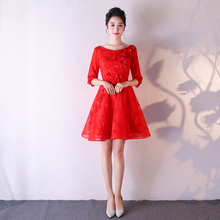 2017新款敬酒服短款红色蕾丝孕妇新娘结婚大码春夏季晚礼服女高腰