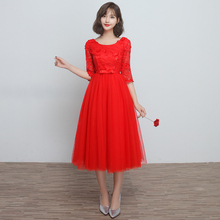 孕妇敬酒服2017新款新娘结婚礼礼服红色中长款高腰大码晚礼服中袖