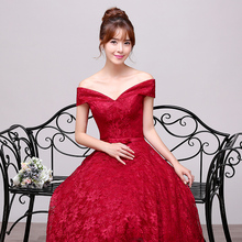 2017新款红色新娘结婚敬酒服长款订婚礼服修身一字肩宴会晚礼服春