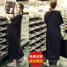 韩国夏季大码宽松纯棉超长款过膝T恤女半袖短袖连衣裙孕妇长裙潮