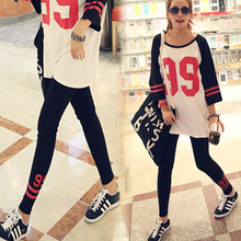 夏季弹力百搭数字印花柔爽澳代尔棉九分打底裤女小脚裤薄款韩版潮