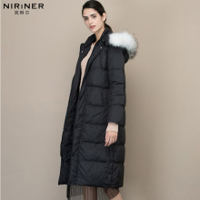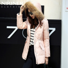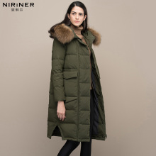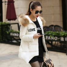 NIRINER2015冬装新款字母大毛领中长款连帽韩版羽绒服加厚外套女