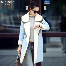 欧仕琪同款2015冬装中长款韩版宽松羊羔毛羊毛呢子大衣外套女潮