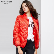 冬装新款薄款韩国立领渐变菱形格立领长袖下摆松紧短款羽绒服女装