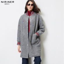 秋冬大衣新款时尚韩版棒球服宽松大码中长款羊毛呢子毛呢外套女潮