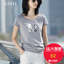 清仓Amii2016夏装新款女T-shirt印花大码短袖T恤小衫宽松纯棉体恤