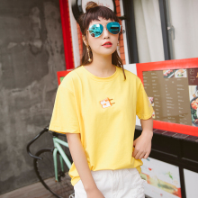 韩版套头圆领刺绣短袖T恤2017春夏新款大码宽松显瘦打底衫上衣女