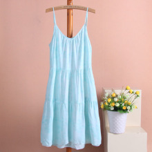 女士棉麻夏季纯色吊带睡裙纯棉宽松休闲家居服宫廷睡衣裙公主中裙