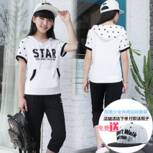 少女夏装套装2017新款短袖七分裤宽松两件套夏季初中学生运动套装