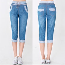 2016春装休闲牛仔裤初中少女学生装松紧中高腰长裤直筒裤女哈伦裤
