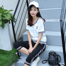 初中高中女学生套装2017新款少女夏装短袖T恤七分裤运动两件套潮