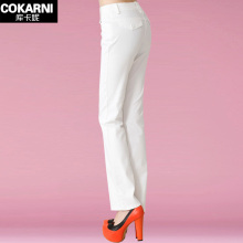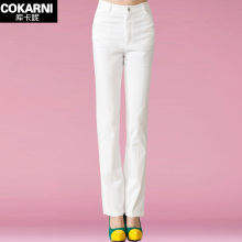 库卡妮2017春夏新款高腰裤女弹力修身白色直筒裤西裤休闲裤女长裤
