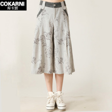 库卡妮2017新款棉麻七分裤休闲裤女夏显瘦九分阔腿裤亚麻女裤裙裤
