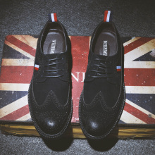 新款英伦欧洲站街头潮鞋布洛克复古雕花套脚皮鞋男低帮休闲鞋子