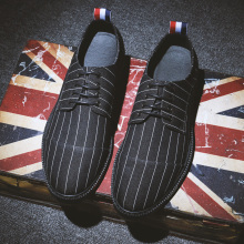潮流新款英伦圆头潮鞋低帮系带皮鞋男日常日系休闲鞋条纹男鞋子