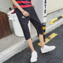 韩版潮流学生宽松七分牛仔短裤男生夏季日系原宿风BF百搭7分裤子