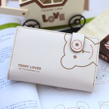 女士小熊钱包女中款韩版可爱搭扣零钱位学生卡通女生儿童简约钱包