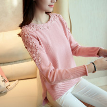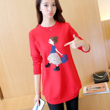 2016秋冬新款女装套头毛衣女韩版绣花美女型中长款针织毛衣外套女