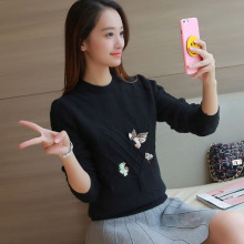 2016秋冬新款套头毛衣女短款韩版女装宽松长袖刺绣圆领针织衫