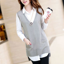 韩版毛衣背心马甲女春秋针织衫中长款无袖宽松打底衫潮