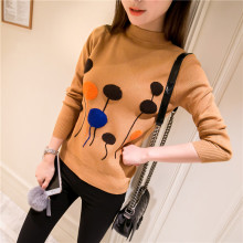 羽芙尼2016春装新款毛衣女半高领宽松针织衫长袖立体装饰打底衫