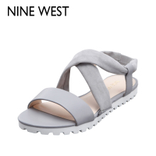 Nine West玖熙2017新款甜美交叉鞋带凉鞋女 露趾舒适平跟鞋一字带