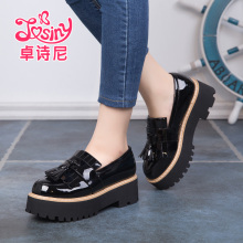 卓诗尼2017春季新款松糕底女鞋百搭圆头英伦学院风流苏单鞋女皮鞋