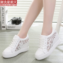 春季休闲鞋女内增高女鞋小白鞋透气网系带运动鞋坡跟厚底高跟单鞋