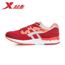 X特步专卖店女鞋正品跑步鞋透气秋天学生运动鞋灰红色轻便旅游鞋