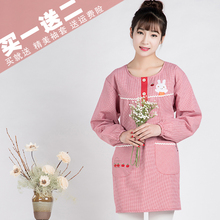包邮厨房韩版时尚围裙长袖纯棉可爱防水防油反穿衣成人罩衣送袖套