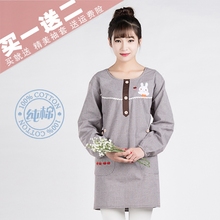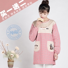 包邮韩版时尚防水防油纯棉长袖围裙居家 可爱厨房罩衣成人反穿衣