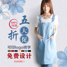 LOGO定制韩版时尚厨房防水纯棉工作服奶茶店咖啡厅美甲可印字围裙