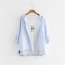 舒然衣社 小猫印花连帽宽松薄款衬衫袖防晒衣女夏装新款夏季外套