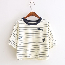 文艺夏上衣 新款日系童趣宽松短款潜水小清新圆领学生短袖T恤 女
