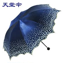 天堂伞遮阳伞防紫外线黑胶折叠太阳伞超轻两用大晴雨伞蕾丝三折女