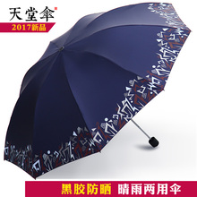 天堂伞正品黑胶太阳伞折叠防晒遮阳伞防紫外线三折公主两用女新款